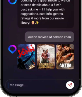 Just type what you want to watch—our chatbot instantly finds movies and shows across all OTT platforms, tailored to your taste.